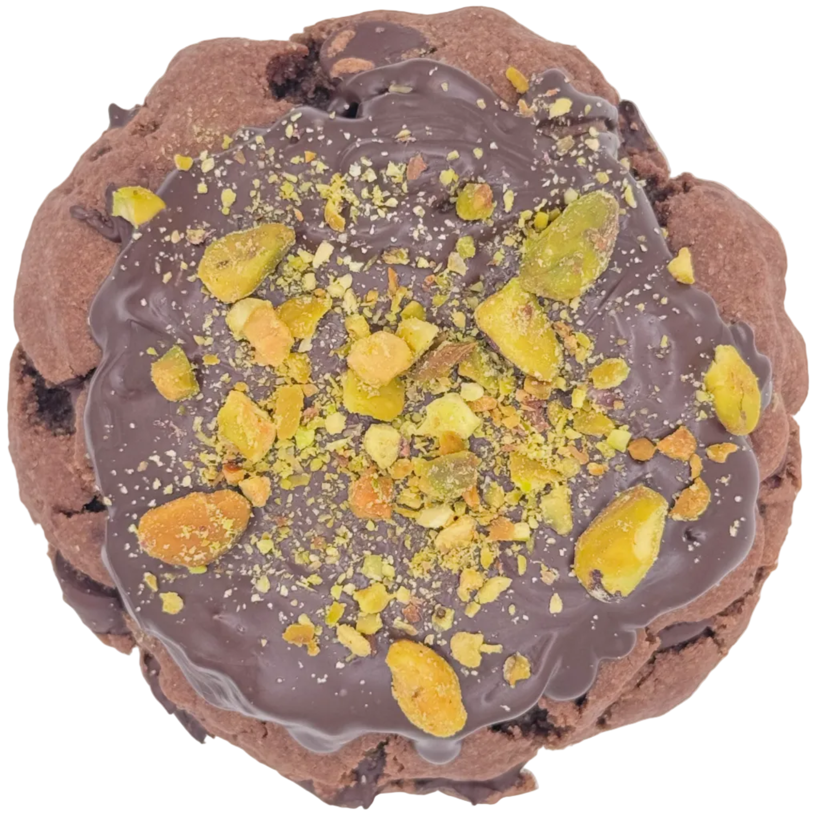 Dark chocolate chips buried in rich chocolate dough, layered with crunchy, buttery pistachio kataifi, topped with molten dark chocolate, and dusted with crushed pistachios for that extra flex. Basically, it’s the edible version of a rooftop infinity pool at 2 AM — decadent, a little dangerous, and fully unnecessary… but we don’t care.